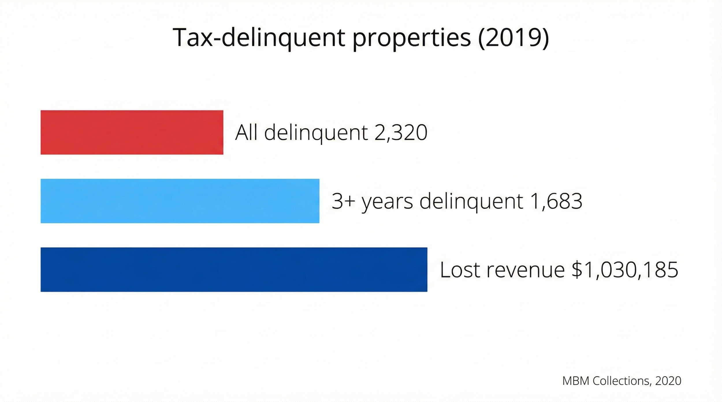 Tax-delinquent properties in 2019; 1,683 were 3+ years delinquent ($1,030,185 lost that year)